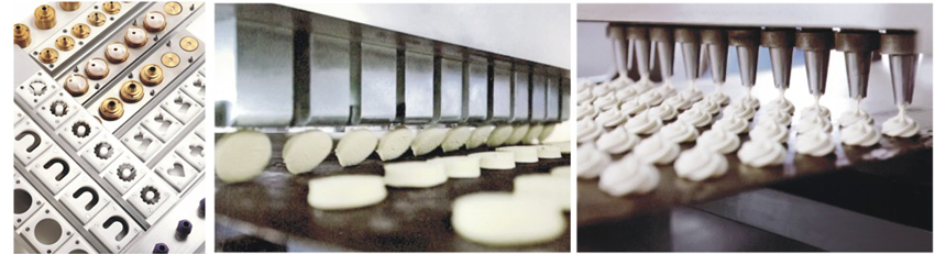 曲奇糕點機(jī),是通過面團(tuán)擠出成形,能生產(chǎn)多種獨(dú)特花式點心和曲奇餅干坯的成形機(jī),具有技術(shù)先進(jìn)、結(jié)構(gòu)緊湊、多功能、操作簡單等特點,深受廣大用戶所歡迎,也是投資者目前市場最理想的新型儀器機(jī)械之一。該機(jī)具有多種模具,能生產(chǎn)幾十種花式曲奇餅干,用戶可根據(jù)需要自行調(diào)節(jié)選擇。成形的花式點心與曲奇餅干,形態(tài)獨(dú)特、花紋清晰、造型美觀。該機(jī)生產(chǎn)的生坯采用熱風(fēng)旋轉(zhuǎn)爐及隧道爐烘烤均可.