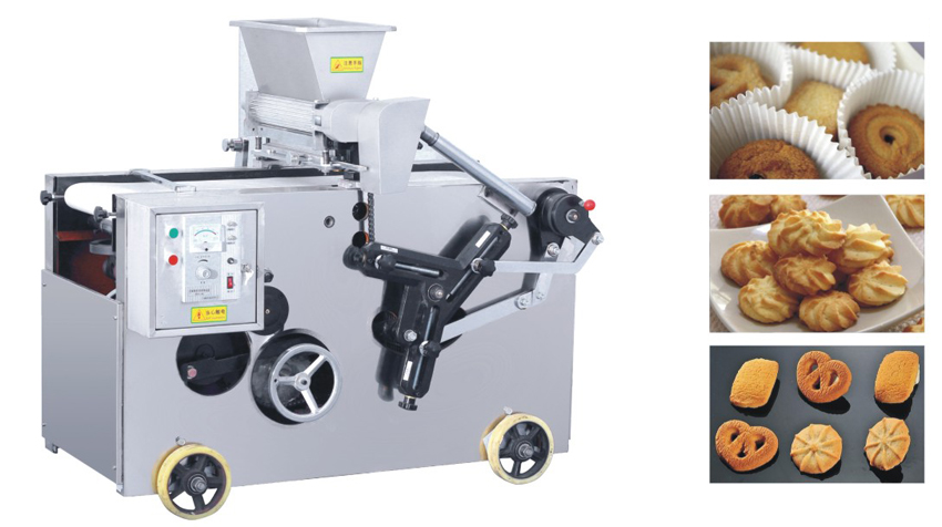 曲奇糕點機,是通過面團擠出成形,能生產(chǎn)多種獨特花式點心和曲奇餅干坯的成形機,具有技術(shù)先進、結(jié)構(gòu)緊湊、多功能、操作簡單等特點,深受廣大用戶所歡迎,也是投資者目前市場最理想的新型儀器機械之一。該機具有多種模具,能生產(chǎn)幾十種花式曲奇餅干,用戶可根據(jù)需要自行調(diào)節(jié)選擇。成形的花式點心與曲奇餅干,形態(tài)獨特、花紋清晰、造型美觀。該機生產(chǎn)的生坯采用熱風(fēng)旋轉(zhuǎn)爐及隧道爐烘烤均可